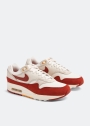 Nike updates the legendary Air Max 1 style in a fresh new colourway with the same lightweight cushioning of the original. Utilising mesh, tumbled leather and suede, take note of the contrast overlays, foam midsole with a visible Max Air unit in the heel for responsive cushioning, and a rubber outsole with a Waffle pattern that delivers durable traction.