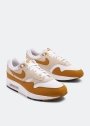 Nike adds a vibrant pop of colour to the Air Max 1 style with this summer-friendly 'Magma Orange' colourway. Experimenting with textures, they're crafted from breathable mesh with suede overlays and textured leather accents on the Swoosh and mudguard. A white midsole with the signature Air cushioning completes the design.