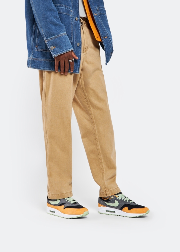 A fall-inspired colourway rules Nike's Air Max 1 PRM sneakers with grey, black, green and muted honeydew orange tones. The suede sneakers are signed off with the signature Air Max unit at the heel and rubber traction sole.