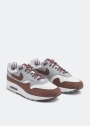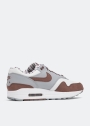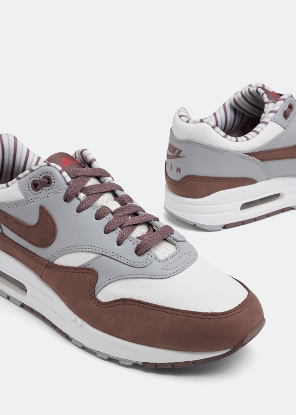Nike's Japanese-inspired 'Shima Shima' pack is extended to the Air Max 1 PRM sneakers. Crafted from leather with a striped lining, they're finished with the signature Air Max unit at the heel, rubber traction sole, and red Japanese characters on the tongue and insole.