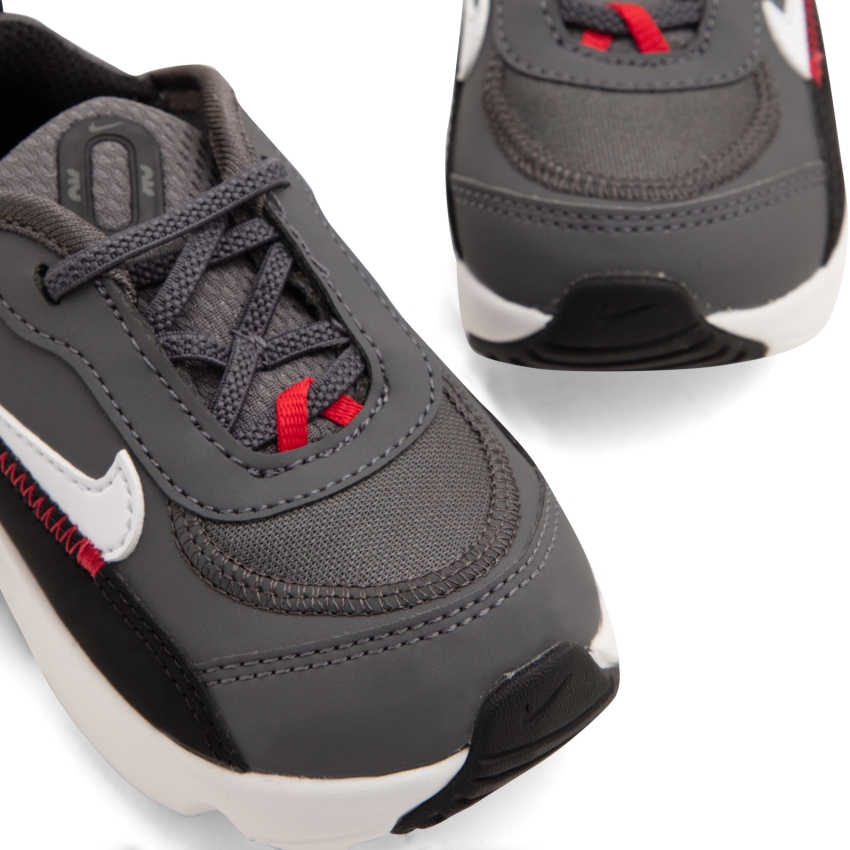 In an "Iron Grey, White, Black and University Red" colourway, the Air Max 2090 sneakers from Nike are inspired by the classic Nike Air Max 90 thanks to their distinctive features and futuristic touches. They feature a Max Air unit and soft foam for added cushioning along with a heel pull tab for easy wearing.