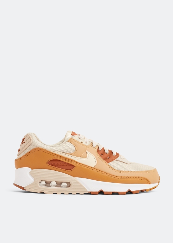 Another must-have rendition of the Air Max 90, Nike presents this classic sneaker in a 'Caramel' colourway. Crafted from different shades of leather and mesh, they feature leather Swooshes, and a gum outsole. Take note of the padded tongue with a canvas twill and 'Air Max' embroidery.