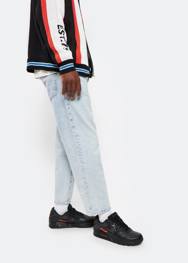 Presented in a 'Black, Anthracite, and Safety Orange' colourway, the Air Max 90 Gore-Tex sneakers by Nike are crafted from a mix of leather and textile materials detailed with Gore-Tex branding on the tongues and lateral side. Other key details include a black and orange rubber sole.