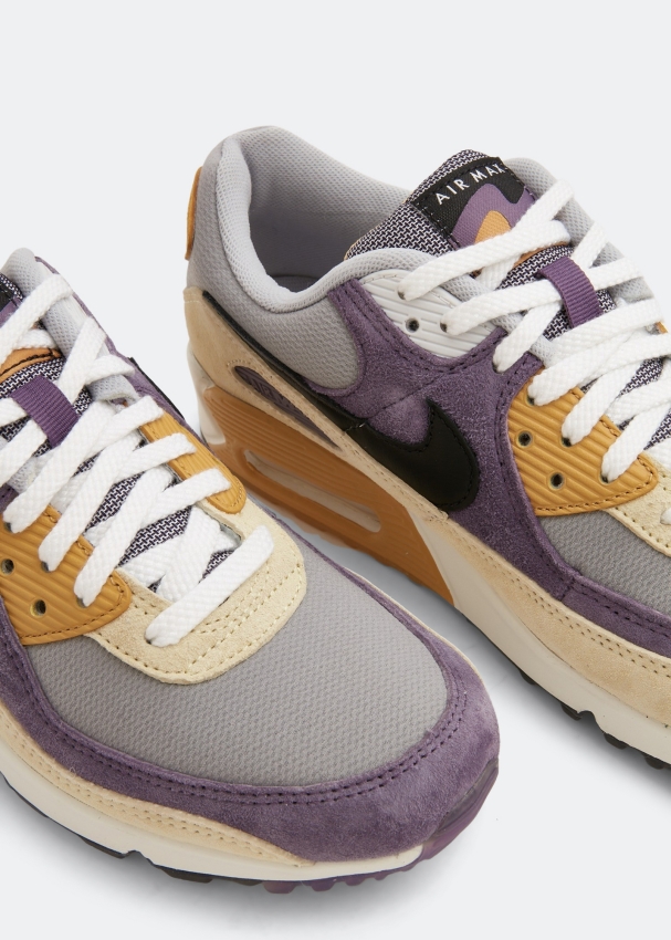 The iconic Air Max 90 by Nike is presented in a Lemondrop and Purple Court colourway. Made from mesh with suede overlays, they're detailed with leather Swooshes on the sides and ballistic mesh tongues, topped off with retro branding. White laces, a chunky midsole and a semi-translucent outsole complete this colourful design.
