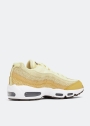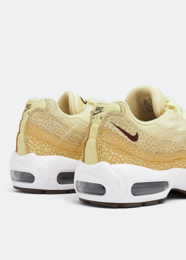 Moving with strength and fluidity, these Nike Air Max 95 'Alabaster' sneakers are designed with an innovative lacing system that creates a custom fit. Made from mesh and leather, these shoes feature classic flex grooves on the outsole for natural movement and are detailed with safari print used on the lateral and tongues.