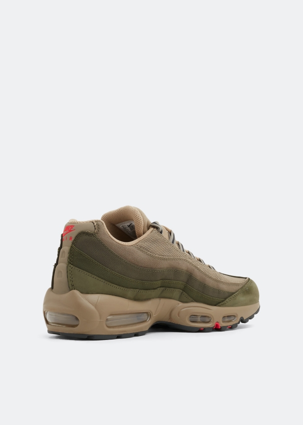 Moving with strength and fluidity, these Nike Air Max 95 'Rough Green' sneakers are designed with an innovative lacing system that creates a custom fit. Made from a mix of mesh, canvas and suede, these shoes feature classic flex grooves on the outsole for natural movement.