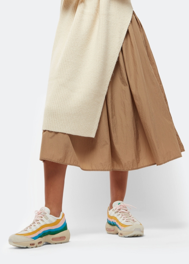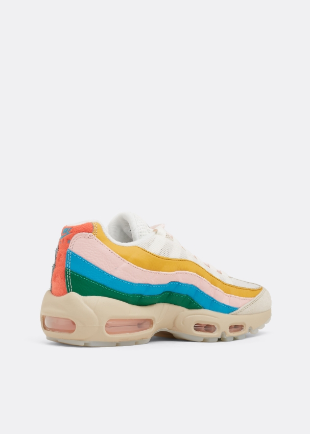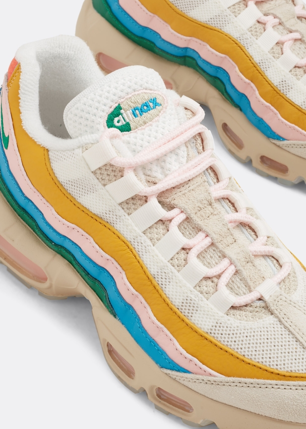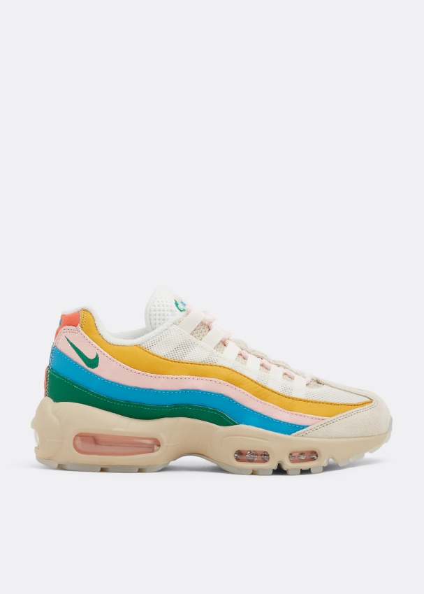 Moving with strength and fluidity, these Nike Air Max 95 sneakers are designed with an innovative lacing system that creates a custom fit. Made from leather and mesh, these shoes feature classic flex grooves on the outsole for natural movement.
