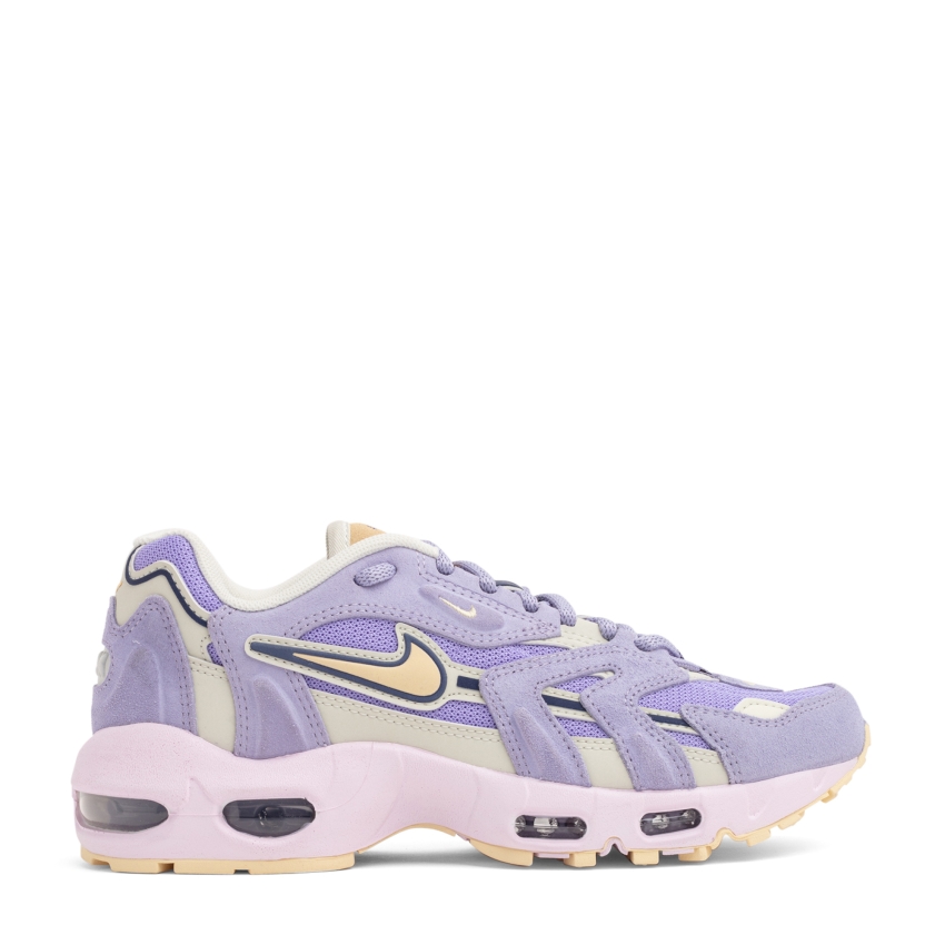 Created in 1996 at the hands of famed designer Sergio Lozano, this sporty silhouette is back in its original form. Originally designed for sport over style—with Air Max cushioning in the heel and forefoot, these Air Max 96 II sneakers arrive with a speedy mesh upper enhanced by leather overlays finished with Purple Dawn, Purple Pulse pastels and a Lemon Drop accent. Celebrate this classic's jubilee while adding another icon to your Air Max rotation.