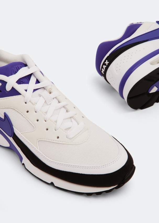 Presented in a White, Persian Violet and Black colourway, these Air Max BW sneakers are presented in a mix of mesh and leather materials. Take note of the White base with Black mudguards, Persian Violet accents, signature visible Air at the heel and rubber outsole.