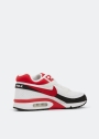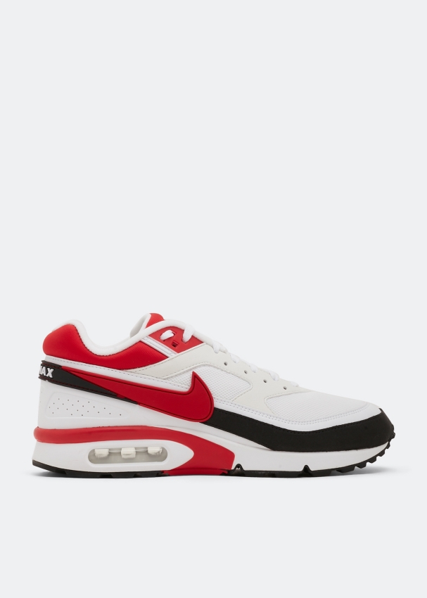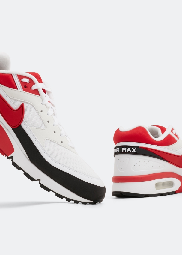 Presented in a White, Sport Red and Black colourway, these Air Max BW sneakers are presented in a mix of mesh and leather materials. Take note of the White base with Black mudguards, Sport Red accents, signature visible Air at the heel and rubber outsole.