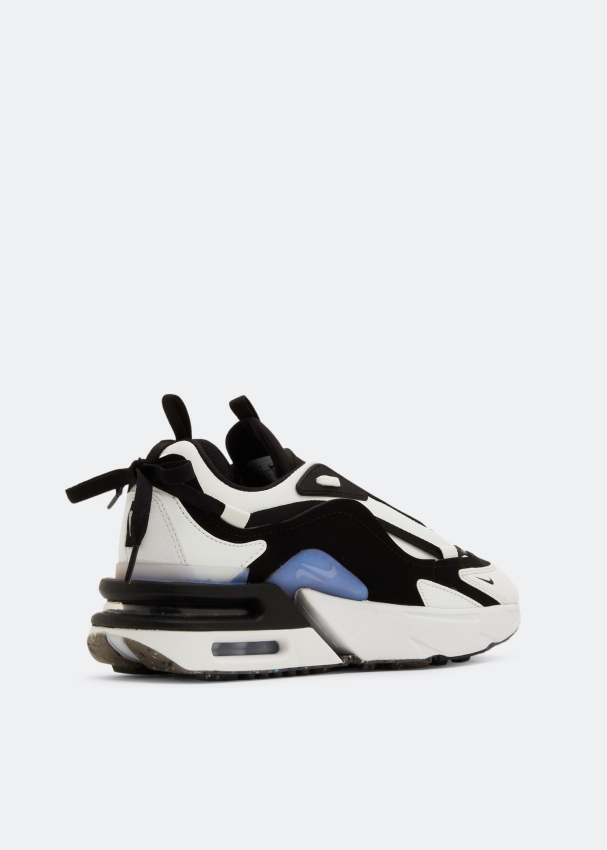 The Air Max Furyosa 'Black Summit White' sneakers from Nike features a brand-new silhouette that blends the larger-than-life aesthetic of the '90s Air Max, with comfort straight from the 21st century. Offset, stacked Air in the heel delivers a bold statement in cushioning and is combined with a plush collar and ultra-padded tongue to provide the support that lasts all day long. The dual-lace system gives you extra room for expression and styling.