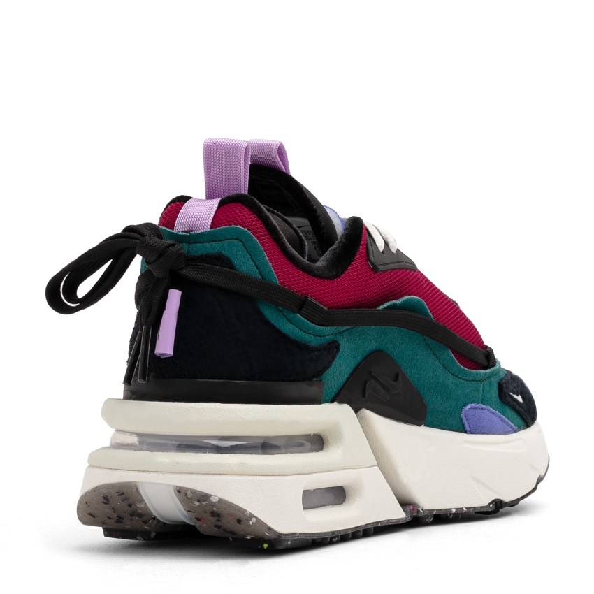 The Air Max Furyosa 'Night Green' sneakers from Nike features a brand-new silhouette that blends the larger-than-life aesthetic of '90s Air Max with comfort straight from the 21st century. Offset, stacked Air in the heel delivers a bold statement in cushioning and is combined with a plush collar and ultra-padded tongue to provide the support that lasts all day long. The dual-lace system gives you extra room for expression and styling.