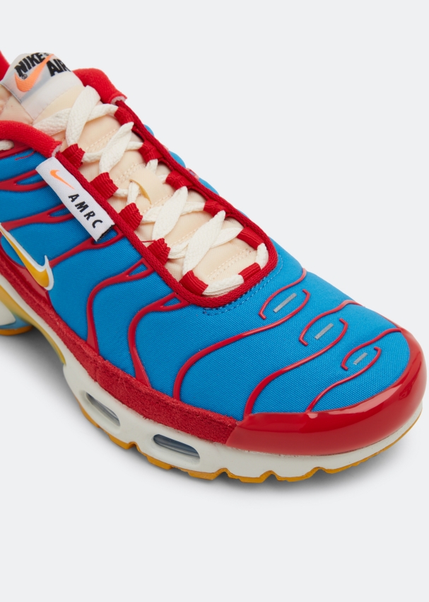 Taking after their performance roots, the Air Max Plus SE 'AMRC' sneakers by Nike come together with retro-styled branding and a vintage-inspired colourway. They feature a Light Photo Blue base with University Red cage, mudguard overlays highlighted with yellow contrasting accents, an 'AMRC' lateral label atop a white midsole and a yellow rubber outsole.