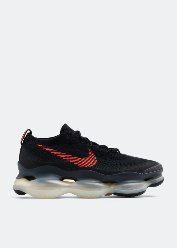 Presented in a dark knit, these Nike Air Max Scorpion sneakers are detailed with slightly contrasting Swooshes and branding. Other key features include a breathable woven upper, pull-tab and a translucent outsole in the signature wide and oversized shape for a cushioned and supportive feel.